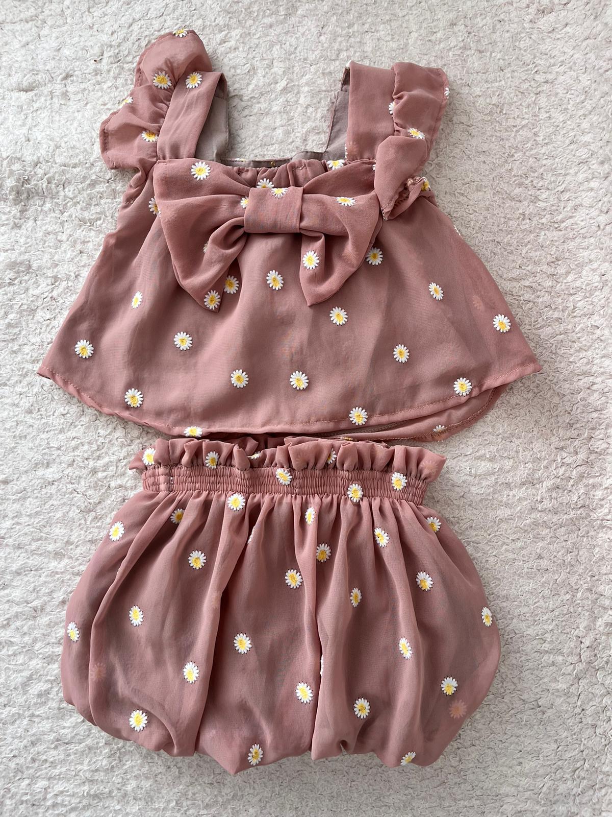 İkili Şifon Kumaş Papatya İşlemelı Kız Takım
