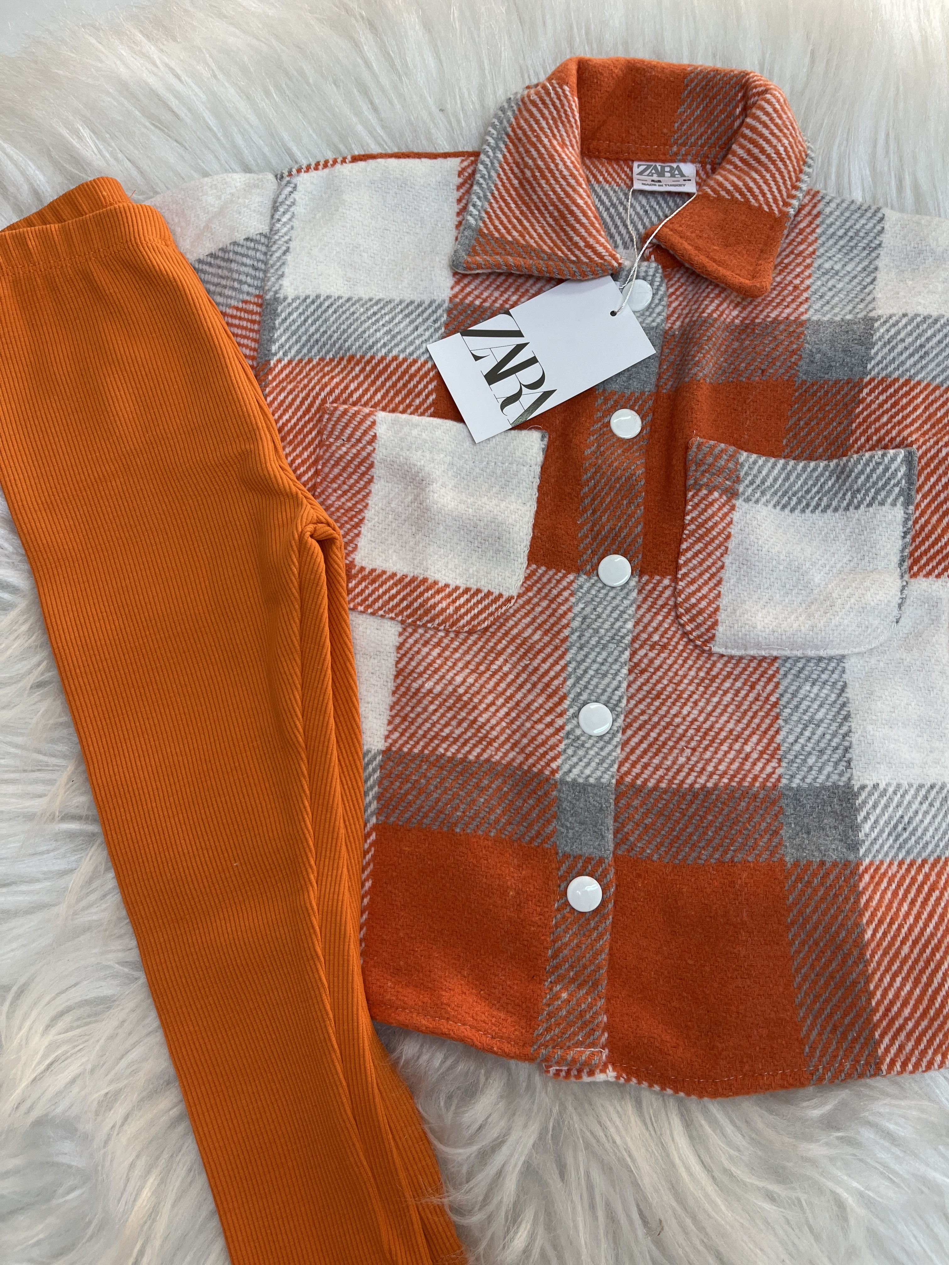 İkili Turuncu Odun Gömlek Fitilli Tayt Takım
